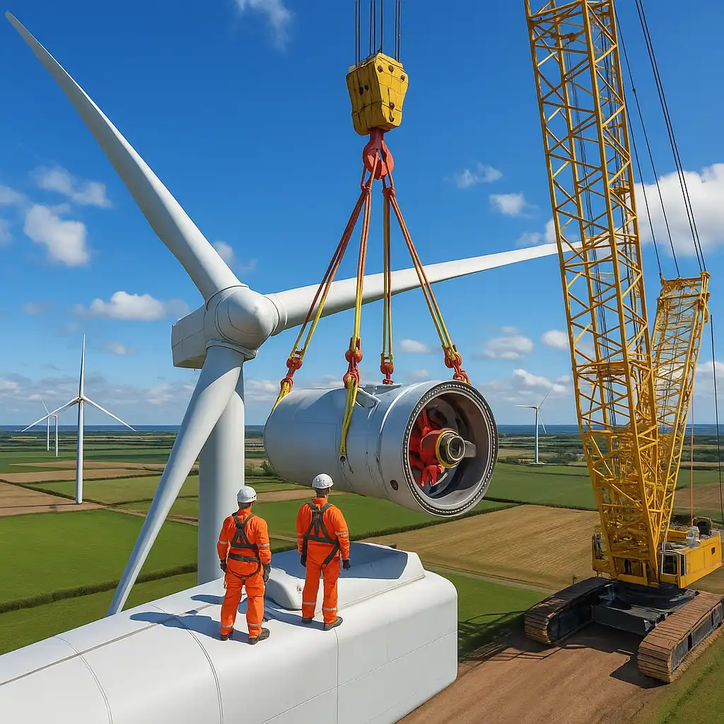 Major Component Exchange (MCE) is a critical service for maintaining the long-term performance and safety of wind turbines. Our team specializes in the removal and replacement of high-value turbine components such as gearboxes, generators, main shafts, and blade bearings. Using advanced rigging techniques, engineered lift plans, and crane coordination, we execute exchanges with precision and minimal downtime. Whether it’s a planned replacement or an emergency swap due to catastrophic failure, Aegis Onshore ensures each MCE is performed safely, efficiently, and in full compliance with OEM standards. Our goal is to restore full turbine functionality while protecting asset life and production targets.